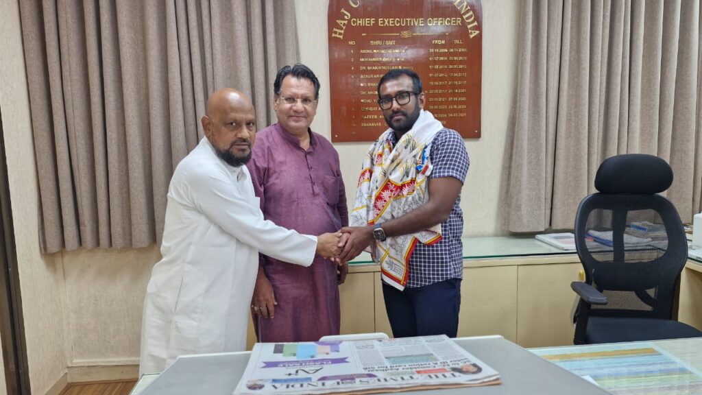 Spread the love अकलतरा – छत्तीसगढ़ राज्य हज कमेटी के चेयरमेन मोहम्मद इमरान एवं पूर्व चेयरमेन असलम खान ने हज 2026 की व्यवस्थाओं के संबंध में मुम्बई प्रवास के दौरान जनाब शहवाज साहब चीफ एक्जक्युटिव्ह ऑफिसर हज कमेटी ऑफ इंडिया से भेंट कर हज व्यवस्थाओं के संबंध में विस्तृत चर्चा की। उन्होने बताया कि हज 2025 … Continue reading मोहम्मद इमरान एवं पूर्व चेयरमेन असलम खान ने हज 2026 की व्यवस्थाओं के संबंध में मुम्बई प्रवास के दौरान