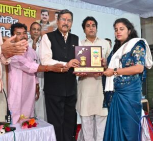 एक शाम शहीदों के नाम कार्यक्रम में शहीद आकाश राव की धर्मपत्नी का व्यापरी संघ ने किया सम्मान