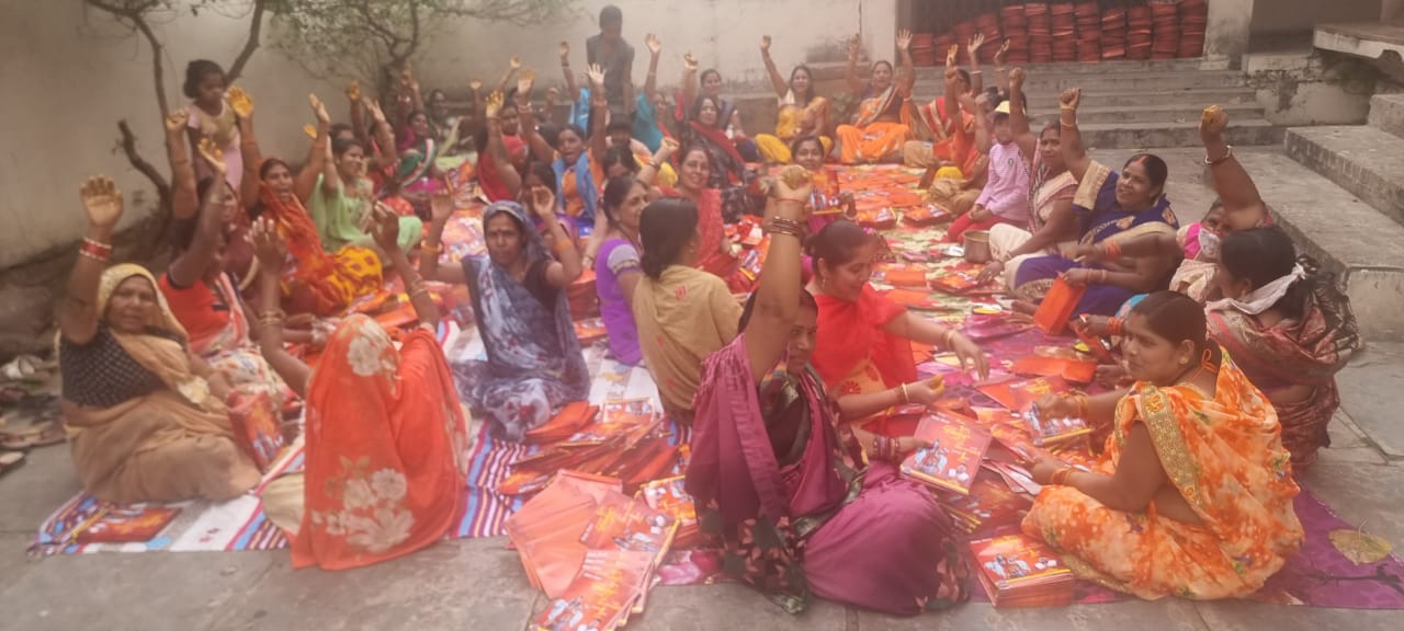 भिलाई में भोले बाबा की बारात के लिए बांटे जाएंगे आमंत्रण कार्ड… कार्ड में महिलाएं लगा रही पीला चावल …