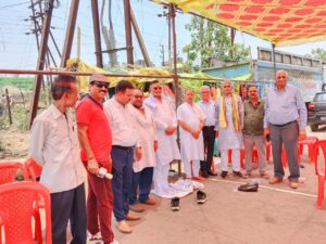 इंस्टॉल लगाकर राहगीरों को शरबत पिलाते हुए भूमिहार ब्राह्मण समाज के लोग
