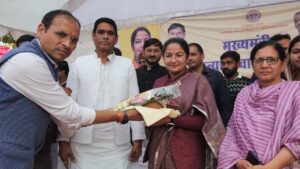 इस अवसर पर मुख्यमंत्री कन्या विवाह सम्मेलन में मुख्य अतिथियों द्वारा वर वधु को आशीर्वाद दिया गया एवं शासन द्वारा 51000 की राशि का चेक वितरित कर वैवाहिक जीवन एवं सुख समृद्धि का आशीर्वाद देते हुए मंगल कामना का आशीर्वाद दिया