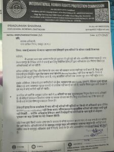 अंतराष्ट्रीय मानवाधिकार संरक्षण आयोग (IHRPC) ने नगर पालिक निगम रायपुर के स्वास्थ्य अधिकारी को पत्र लिखकर शहर की सफाई व्यवस्था में व्याप्त भ्रष्टाचार, ठेकेदारों द्वारा श्रमिकों के शोषण, और प्रशासनिक लापरवाही के विरुद्ध गंभीर शिकायत दर्ज की है।