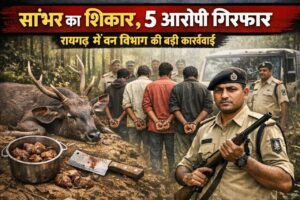 рд░рд╛рдпрдЧрдврд╝ред рд╡рди рд╡рд┐рднрд╛рдЧ рдиреЗ рдЕрд╡реИрдз рд╢рд┐рдХрд╛рд░ рдХреЗ рдПрдХ рдЧрдВрднреАрд░ рдорд╛рдорд▓реЗ рдХрд╛ рдЦреБрд▓рд╛рд╕рд╛ рдХрд░рддреЗ рд╣реБрдП 5 рдЖрд░реЛрдкрд┐рдпреЛрдВ рдХреЛ рдЧрд┐рд░рдлреНрддрд╛рд░ рдХрд┐рдпрд╛ рд╣реИред рдорд╛рдорд▓рд╛ рд░рд╛рдпрдЧрдврд╝ рд░реЗрдВрдЬ рдХреЗ рдЕрдВрддрд░реНрдЧрдд рдЖрдиреЗ рд╡рд╛рд▓реЗ рджреЗрд▓рд╛рд░реА рдЧрд╛рдВрд╡ рдХрд╛ рд╣реИ, рдЬрд╣рд╛рдВ рд╕рдВрд░рдХреНрд╖рд┐рдд рд╡рдиреНрдпрдкреНрд░рд╛рдгреА рд╕рд╛рдВрднрд░ рдХрд╛ рд╢рд┐рдХрд╛рд░ рдХрд┐рдП рдЬрд╛рдиреЗ рдХреА рдкреБрд╖реНрдЯрд┐ рд╣реБрдИ рд╣реИред