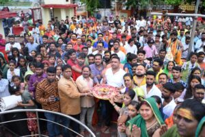 भिलाई। आज सावन का दूसरा सोमवार है। भिलाई के बैकुंठधाम के शिव मंदिर में भव्य आयोजन किया गया। बोल बम सेवा एवं कल्याण समिति द्वारा ये आयोजन किया गया। मंदिर में 108 किलो दूध, दही, घी, शहद और चंदन द्वारा महारुद्राभिषेक किया गया है। प्रमुख रूप से पद्मश्री उषा बारले शामिल हुए। बोल बम सेवा एवं कल्याण समितिप्रदेश अध्यक्ष दया सिंह और उषा बारले द्वारा प्रारंभ की गई। बोल बम सेवा एवं कल्याण आउट कल्याण समिति के प्रदेश अध्यक्ष दया सिंह और उषा बारले द्वारा प्रारंभ की गई।
